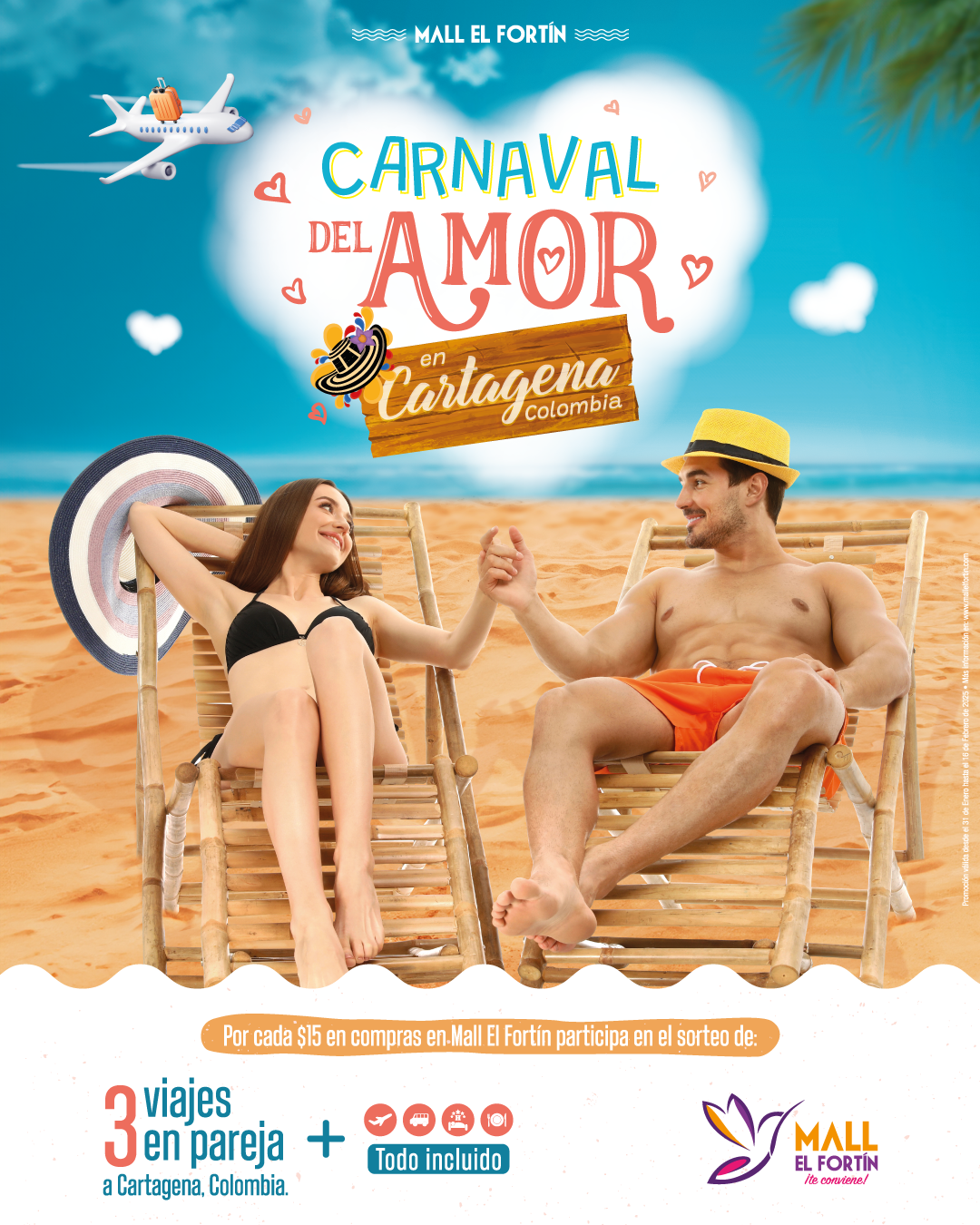 Para la campaña “CARNAVAL DEL AMOR EN CARTAGENA” todos los clientes del Centro Comercial Mall El Fortín, que realicen compras en los establecimientos que sumen $15,00 (las compras son acumulables) podrán participar por el premio anteriormente mencionado. El cliente deberá canjear su cupón de participación en el respectivo punto de canje del Centro Comercial Mall El Fortín y otorgar todos los datos solicitados para su registro. Se considera un monto máximo de canje por persona o factura de hasta $3.000USD.