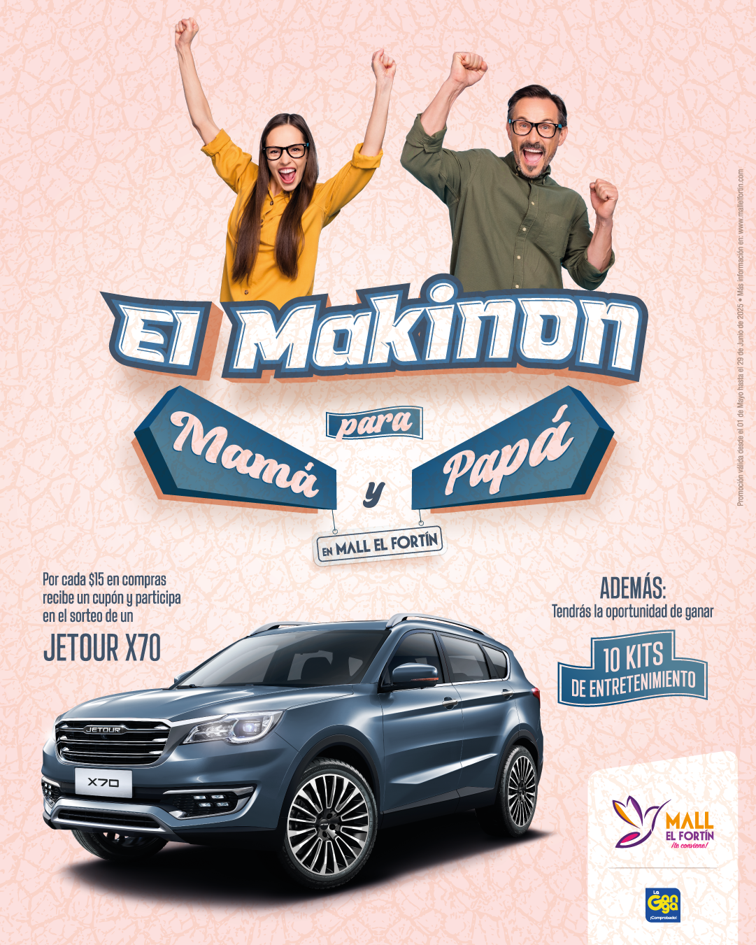 Para la campaña “EL MAKINON PARA MAMÁ Y PAPÁ” todos los clientes del Centro Comercial Mall El Fortín, que realicen compras en los establecimientos que sumen $15,00 (las compras son acumulables) podrán participar por los premios anteriormente mencionados. El cliente deberá canjear su cupón en el respectivo punto de atención al cliente del Centro Comercial Mall El Fortín y otorgar todos los datos solicitados para una correcta participación. Se considera un monto máximo de canje por persona o factura de hasta $3.000.